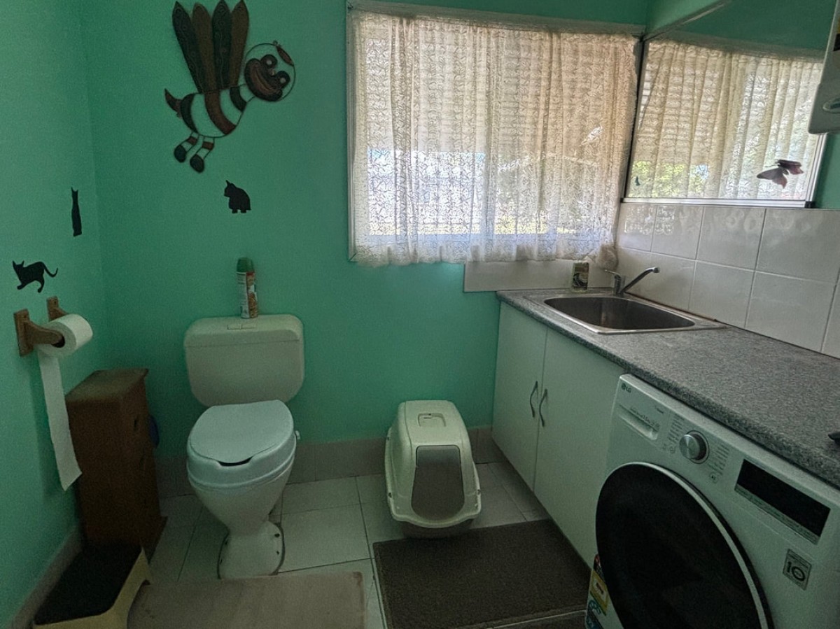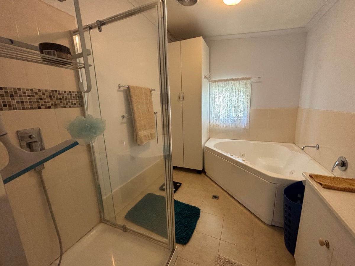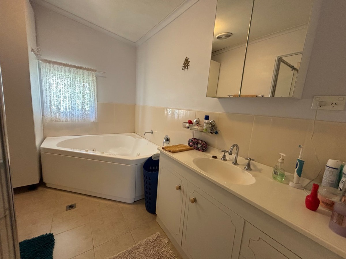 The main bathroom offers a shower, spa bath, vanity and toilet and a second toilet is located in the laundry.